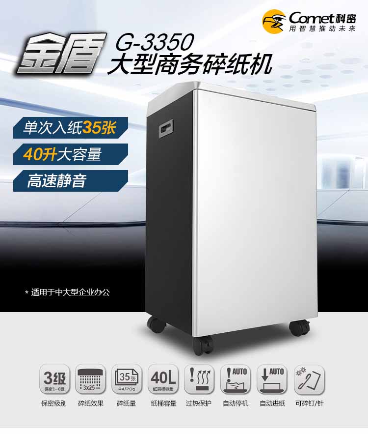 科密金盾G-3350碎纸机 大型长时间大容量大功率工业级商务单位办公 35张60分钟