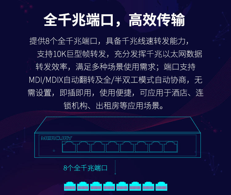 Mercury/水星 SG108 Pro 全千兆8口网络交换机 二层网管WEB管理 VLAN划分QoS控制企业办公家用网线分流分线器